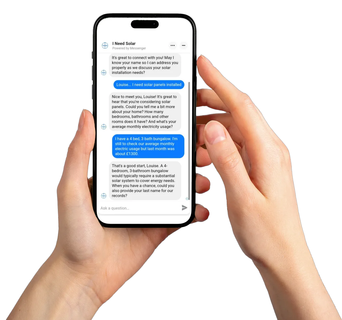OUR AI SOLAR CHATBOT IS THE GAME-CHANGER YOU'VE BEEN WAITING FOR! Imagine effortlessly connecting with prospects genuinely interested in your solar solutions. No more chasing dead-end leads or missed opportunities! Our AI Solar Chatbot sparks genuine conversations, generates high-quality leads, and ensures no potential customer slips through the cracks.