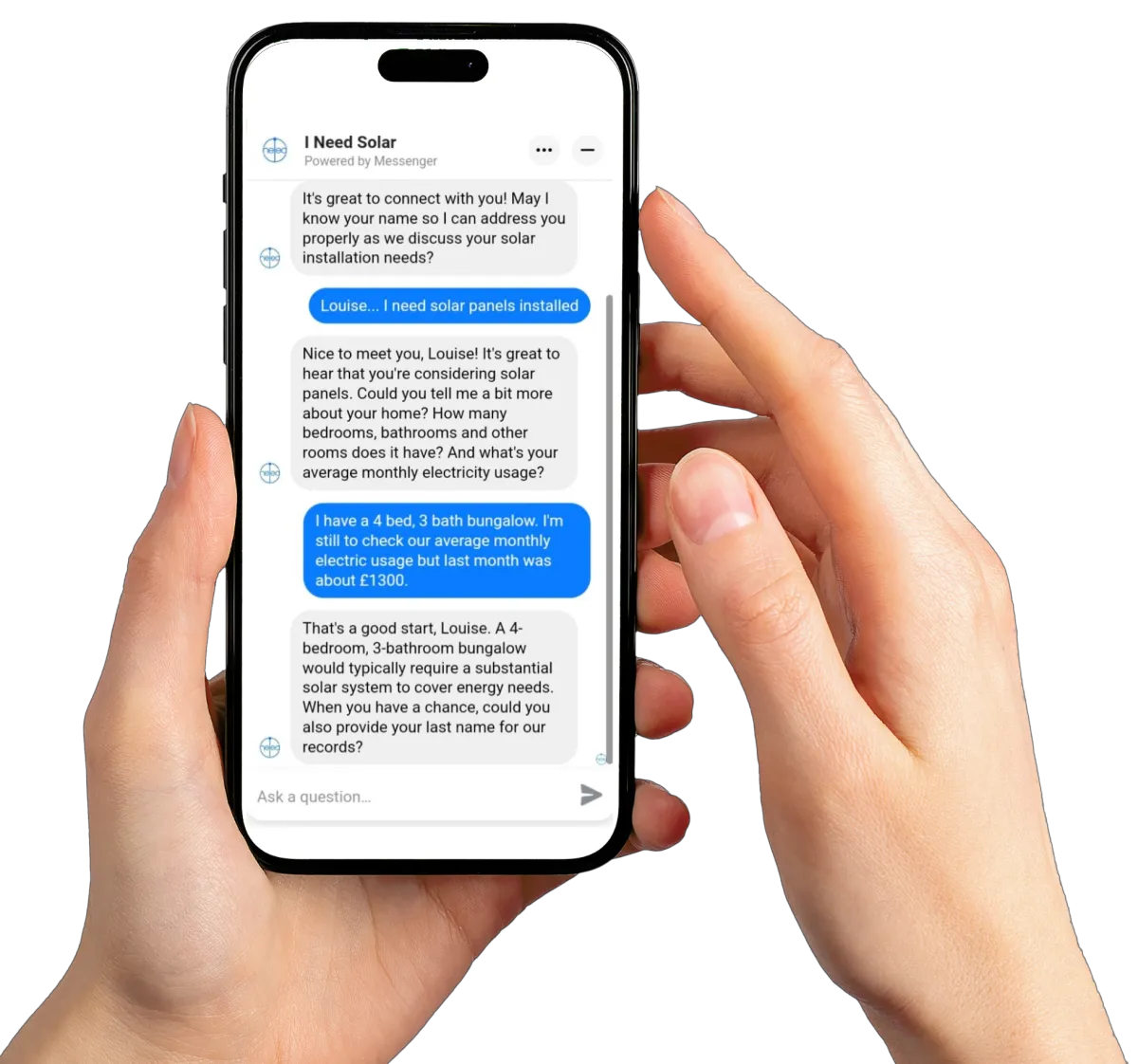 OUR SOLAR AI CHATBOT IS THE GAME-CHANGER YOU'VE BEEN WAITING FOR! Imagine effortlessly connecting with prospects genuinely interested in your solar solutions. No more chasing dead-end leads or missed opportunities! Our AI Solar Chatbot sparks genuine conversations, generates high-quality leads, and ensures no potential customer slips through the cracks.